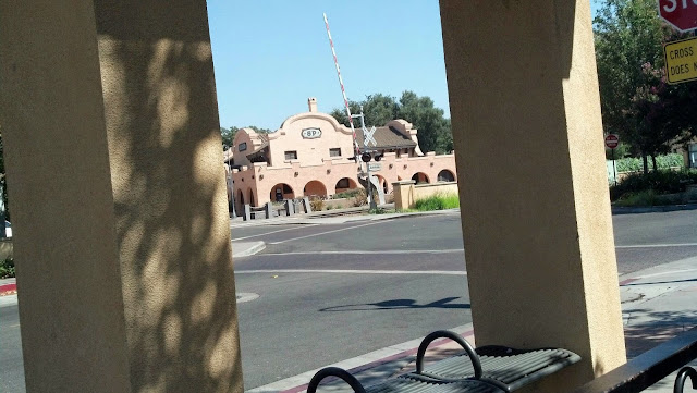 On the way home from visiting KD (who is in several pieces at the moment), and drove all over Davis searching for a chimichanga. Found one at Tres Hermanas, across from the old Southern Pacific station (as usual, I find trains).